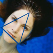 Az elemek közül a tűznek, a bolygók közül a Napnak megfeleltethető. Kolerikus vérmérsékletet jelez. Állkapcsa széles, homloka keskeny. Fizikuma és jellemvonásai emlékeztetnek a négyzetes arcú emberekére. A haj sűrű, hullámos, szőke oroszlánsörényként keretezi az arcot. A szemöldök alacsonyan helyezkedik el. A szem nagy, világos színű. A fülek gyakran elállók. A háromszög arcú emberek gyakran törtetők, agresszívak, nem riadnak vissza a törvénytelen előrejutástól sem. Ingerlékenységük és erőszakosságuk nem teszi közkedveltté őket. Ugyanakkor elbűvölők is tudnak lenni, akiknek jó a fényében sütkérezni.