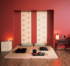 A lakásbelsőkre hagyományosan jellemzőek a mozgatható falak. Ezt tulajdonképpen egyszerűen, egy-egy nagyméretű tolóajtó segítségével valósítják meg, így a tér tetszés szerint határolható vagy egybenyitható. Eltérés csupán az anyagok használatában mutatkozik. Míg a hagyományos otthonokban bambuszkeretre erősített rizspapír szolgált ajtóként, manapság ezt fakeretbe épített tejüveggel oldják meg. Így, ha szükséges, az összes helyiség egy légtérbe kerül, egyedül a konyha marad szeparált. A régi típusú házaknak legfeljebb egy ablaka nyílik az utcára. A kapcsolatot a természettel inkább a kertre nyíló ajtók jelentik, melyeket akár egész napra széttolva hagynak, ezáltal a kert az otthon szerves részévé válik. Európai szemmel nézve a japán berendezés, még a módos házakban is rendkívül puritán. A szobák nem túlzsúfoltak, nincsenek tarka színek, sem díszek, csecsebecsék.