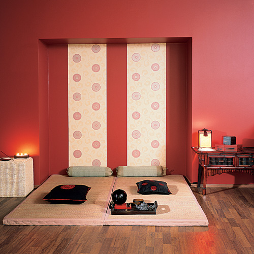 A lakásbelsőkre hagyományosan jellemzőek a mozgatható falak. Ezt tulajdonképpen egyszerűen, egy-egy nagyméretű tolóajtó segítségével valósítják meg, így a tér tetszés szerint határolható vagy egybenyitható. Eltérés csupán az anyagok használatában mutatkozik. Míg a hagyományos otthonokban bambuszkeretre erősített rizspapír szolgált ajtóként, manapság ezt fakeretbe épített tejüveggel oldják meg. Így, ha szükséges, az összes helyiség egy légtérbe kerül, egyedül a konyha marad szeparált. A régi típusú házaknak legfeljebb egy ablaka nyílik az utcára. A kapcsolatot a természettel inkább a kertre nyíló ajtók jelentik, melyeket akár egész napra széttolva hagynak, ezáltal a kert az otthon szerves részévé válik. Európai szemmel nézve a japán berendezés, még a módos házakban is rendkívül puritán. A szobák nem túlzsúfoltak, nincsenek tarka színek, sem díszek, csecsebecsék.