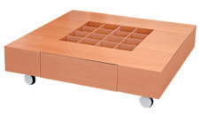 A közepén kiképzett tárolódobozokba elhelyezhetjük a poharakat vagy a vázát, az apró díszeket, oldalsó fiókjába újságokat, szalvétákat tehetünk. Könnyen gurítható vagy ide-oda fordítható. Tágas nappaliban mutat a legjobban. (Design Corner)