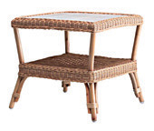 Rattanasztalka, melyre a tetejét borító csempeburkolatnak köszönhetően nyugodtan