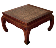 Szilfából készült, rattanlappal ellátott indiai asztal, ívelt lábakkal. Mérete és tömörfa