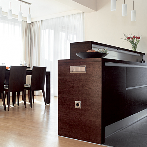Egyrészt alapvető fontosságú volt a háziak számára, hogy otthonuk technológiai értelemben ma divatos kifejezéssel élve intelligens legyen, ezért már az alaprajznál figyelembe vették a gépészeti szempontokat. Az elkészült házban Rehau épülettemperálás működik: mennyezethűtés váltja fel a zajos légkondicionálót, és minden beltéri egység külön-külön temperálható. Központi a porszívó és az árnyékolórendszer is, de még a szórakoztatóelektronika helyét is jó előre megtervezték annak érdekében, hogy a hangfalak vezetékei is a falban futhassanak.