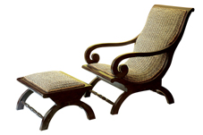 Teakfából és tengerifűből készült, lágyan ívelt pihenőfotel, melyhez – a kényelmet fokozandó – egy lábtartó zsámoly is tartozik. Az ülőfelületre és a háttámlára érdemes néhány párnát helyezni. Kisebb és nagyobb térben egyaránt elhelyezhető. Természetes