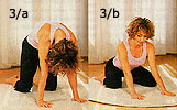 a lehetséges mértékben távolítani egymástól. (3/a) Engedd csípődet a talaj közelébe, és közben igyekezz gerinced egyenesen tartani, nyújtott könyökkel kezedre támaszkodva. Próbáld figyelmed a mozdulat ellen tiltakozó izmokra irányítani, hogy azok ellazulásával a lábfej és a csípő ízületei minél erőteljesebben kimozduljanak. Néhány másodpercen keresztül tartsd ezt a testhelyzetet! (3/b)