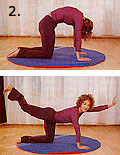 Engedd vissza gerinced vízszintesig, és nyújtsd előre bal karod magasra feszítve, miközben egyensúlyod ügyesen megtartva, igyekezz hátraemelni jobb lábad. Már az is nagyszerű eredmény, ha kettőig számolva sikerül tartanod ezt a testhelyzetet a holtpontig, emelt karral és lábbal. Ismételd meg néhányszor váltott karral és lábbal!