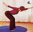 4. Kifelé néző lábfejjel, kisterpeszben hajlítsd térded, és döntsd előre törzsed, mintha tálcát kellene tartanod hátadon.