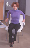 4. Ülj egyenesen kiemelt mellkassal, és fogd meg a szék karfáját. Emeld föl egyik lábad nyújtva vízszintesig, és maradj így 3-4 másodpercig, majd ismételd a másik lábaddal is.