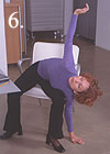 6. Ülj kiemelt mellkassal és hajolj balra, bal kezeddel a talajhoz közeledve, és jobb kézzel a magasba nyújtózva. Nézz közben fölfelé. Ismételd felváltva mindkét oldalra.