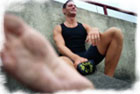 Első alkalommal természetesen mentőt akartunk hívni, de a többi testépítő is aggódva méregetett minket. Mint két főtt rák, úgy üldögéltünk az egyórás ütögetés után, lábunknál kis tócsába gyűlt a kiizzadt verejték, a légszomjtól pedig a búvárok mélységi mámorához hasonló, eszméletvesztéshez közel álló állapotba jutottunk. Azóta viszont…