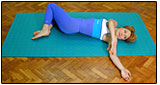 Háton fekvésben döntse a karjait jobbra, a térdeit balra, és lazán cserélje a karok és lábak helyzetét!