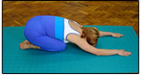 Sarokülésben feküdjön rá a combjára, karokat nyújtsa előre, lazítson 8-10 másodpercig!