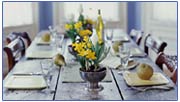 A terítés ünnepélyességét fokozhatjuk virág- és gyertyadíszítéssel. Valamennyi, az asztalon elhelyezett tárgynak anyagában és színében harmonizálni kell, hogy igaz legyen az osztrák Johann Nepomuk Nestroy színműírónak e mondata: „A terített asztal a legszebb tárgy.”