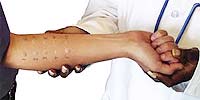 Prick-teszt (bőrpróba): a gyanított allergén kis mennyiségét juttatják a bőrre, majd parányi szúrást vagy karcolást ejtenek rajta. 5-20 percen belül szúnyogcsípésszerű dudor jelzi, ha a próba pozitív.