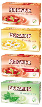 Próbáld ki, és szeresd meg a megújult Pickwick Csipkebogyó-Hibiszkusz teát, Kamilla teát, Eperízű csipkebogyó teát és Borsmenta teát!