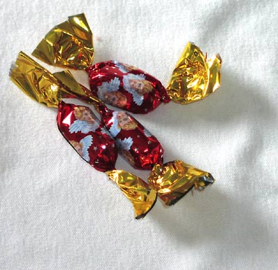 kókuszos: a töltelék kemény, a kókuszdarabkák összeolvadtak egy szilárd masszává. Íze a hagyományos, régi fajta szaloncukoré. citromos zselés: hagyományos zselés szaloncukor. Édes és nem értem, miért szeretik olyan sokan. beazonosítatlan: frutti ízű, a belseje valójában nem tudjuk mi lehet. A töltelék élénk zöld színű. Gyerekkor fíling. málnás(?) zselés: nem sokat lehet hozzáfűzni. Málna ízt nem igen éreztünk, sokkal inkább citromos. |