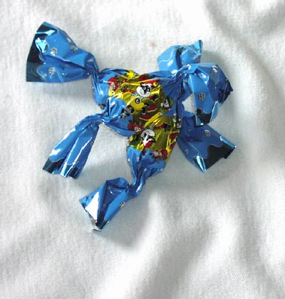 A csomagból másodikként kiemelt cukorka már ennél is különösebb, de meghatározhatóbb ízű volt: banános. És egész finom is. Állaga mint a megolvadt fruttié.