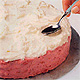 6. Az epret megmossuk, jól lecsöpögtetjük, szárát levesszük, a szemeket felszeleteljük és cserépszerűen a tejszínmasszára fektetjük.