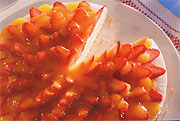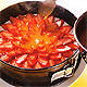 7. A bevonathoz a tortazseléből és narancsléből a bevonatot a tasakon lévő leírás szerint de cukor nélkül elkészítjük, és középről kiindulva az eperszeletekre öntjük. A