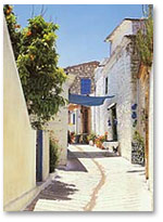 Ezúttal szerencsénk is volt! Az útikönyv az Omodos (könyv: „Ciprus borfővárosa”) hegyi falut is örömmel ajánlotta. A falu csodaszép, és kifogtunk egy nagyszerű koszttal szolgáló éttermet. Életemben nem ebédeltem még olyan jót, mint akkor. Meg kell hagyni, ehhez a helyi borspecialitás is kellően hozzájárult.