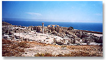 | az ókori Kurion a domb tetejéről tekint le a tengerre |