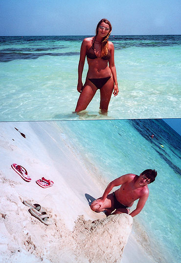 Az útikönyv nem jelöli, hogy a mi hotelünkhöz tartozó partszakasz a legszebb és legkellemesebb a városban. Sebaj, biztos rejtegetik a tömeges látogatók elől, ellenben a szomszéd strandot minden létező katalógusban és természetesen ebben a könyvben is fotók tömege illegeti. Még úgyis ráérünk fürdeni, előtte jöjjék egy jól megérdemelt biciklitúra!