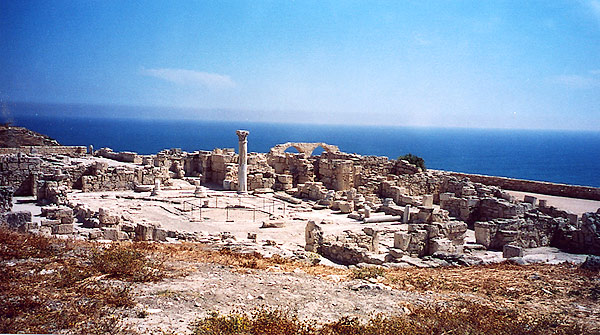 | az ókori Kurion a domb tetejéről tekint le a tengerre |