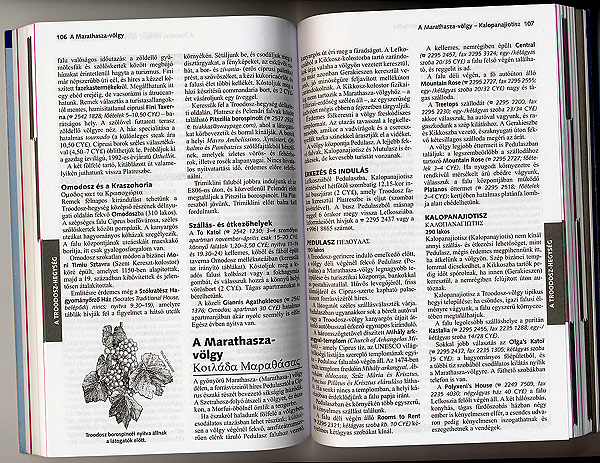 Pedig a ciprusi „fúd” isteni, utánozhatatlan, szinte bárhol lehet jóízűt falatozni. Talán új tulajdonosa lett az étteremnek, mióta kiadták a könyvet? Ki tudja.