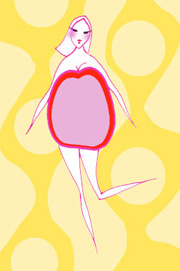 Tulajdonságok: Teste a csípő és a combok felé gömbölyödik, dereka karcsú, karja és felsőteste vékony. A mell- és derékbősége között jóval kisebb az eltérés, mint a derék- és csípőbősége között. Jennifer Lopez e típus jellegzetes képviselője.