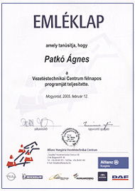 Köszönjük a lehetőséget az Allianz Hungária Vezetéstechnikai Centrumnak és az instrukciókat Pesoldt Ferencnek, aki kitartóan bíztatta a Fittipaldi-jelölteket.