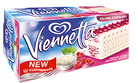 Az üdítően friss Viennetta Túró-Málna lágy vanília és túró jégkrém finom málnaszósz rétegekkel.