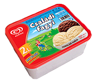 Az Algida Családi fagyi vanília-csokoládé jégkrém mesterséges színezék nélkül készül, és maximum 7% zsírt tartalmaz.