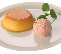 A créme caramel desszertet rakjuk egy tányérra, majd finom Carte d’Or Eper jégkrémmel társítva szervírozzuk ezt az édes párosítást.