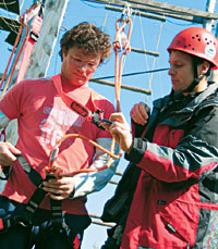 Egy nyolc méter magas, kifeszített kötelekbõl álló akadálypálya elõször inkább félelmetesnek, mint jó bulinak tûnik. Az elsõ lépések megtétele után azonban a félelem izgalmas kihívássá, az összes erõpróbán túljutva pedig igazi kalanddá válik. Az új személyiségfejlesztõ módszert a vállalkozó kedvû sztárok mellett a fõszerkesztõnk is kipróbálta.