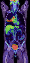Nem árt tudni A pozitronemissziós tomográfos (PET) módszer olyan funkcionális képalkotó eljárás, amely pozitronsugárzó izotópokkal jelölt molekulák segítségével képes a szervezet biokémiai folyamatait ábrázolni. A páciens intravénásan kap egy speciális „nyomjelző” izotópot, amit kombinálnak valamilyen, az anyagcserében aktívan résztvevő molekulával (a vizsgálni kívánt szervtől függően glükózzal, aminosavval, zsíralkotóval vagy ammóniával), s ennek eloszlását érzékelik a detektorok. Az izotóppal megjelölt glükóz molekula az egyes szervekben cukorigényüktől függően dúsul föl, s a hozzákötött izotóp bomlása pedig jelez, ez az, ami a képen észlelhető. A rosszindulatú daganatok például azért vesznek föl sok cukrot, mert nagyon rossz hatásfokkal használják föl azt. |