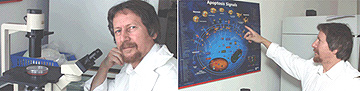 Én máshogy kerülök kapcsolatba a rákkal, mint az orvosok. Ők gyógyítani próbálják operációval, sugárkezeléssel, kemoterápiával, tehát szervi szinten foglalkoznak vele. Én viszont, mint kutató, a ráksejteket és a bennük lévő molekulákat vizsgálom, tehát sejt- illetve molekuláris szinten foglalkozom a problémával mondja, miközben a Biokémiai Intézet alagsorába tartunk lefelé a lépcsőn. A folyosón felettünk fűtés- és szennyvízcsövek rohangálnak a plafon alatt: úgy látszik, nálunk senkit nem zavar, hogy miközben a rákos sejtek elpusztítása a tét, felettünk klutyog a vezeték. A kis alagsori szobában igyekszünk elvonatkoztatni a körülményektől. Az ablakon át a felhős kék ég, néhány fa koronája, az alagsori támfal látszik.