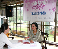 Közben a Fogadó másik felében a Nők Lapja Cafe nagy rózsaszín logója alatt szakértőink válaszoltak a hozzájuk fordulók kérdéseire. Battonyai Tündét nemcsak mint szakértőnket, hanem mint a női önkifejezés, önbizalom erősítését célzó Napraforgó tréningek vezetőjét is faggatták. A szakértői asztaloknál szó esett a jógáról, a hastáncról, az arcfestésről,  sőt nőgyógyászunk is segített a hozzá fordulóknak.