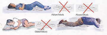 – Csak egy párnán aludj, az se legyen túl nagy. Ha a hátadon fekszel, tegyél párnát a térded alá, ha az oldaladon, a két térded közé.