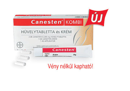 A Canesten Kombi vény nélkül kapható gyógyszer. Hatóanyag: klotrimazol. Nem alkalmazható a készítmény bármely összetevőjével szembeni túlérzékenység esetén, menstruáció idején. Csak orvosi javaslatra alkalmazható, ha a betegség először fordul elő, vagy egy évben több mint négyszer jelentkezik, terhesség és szoptatás alatt. Mellékhatásként égő, csípő érzés, bőrvörösség, bőrkiütés, túlérzékenységi reakciók jelentkezhetnek.