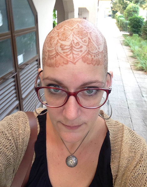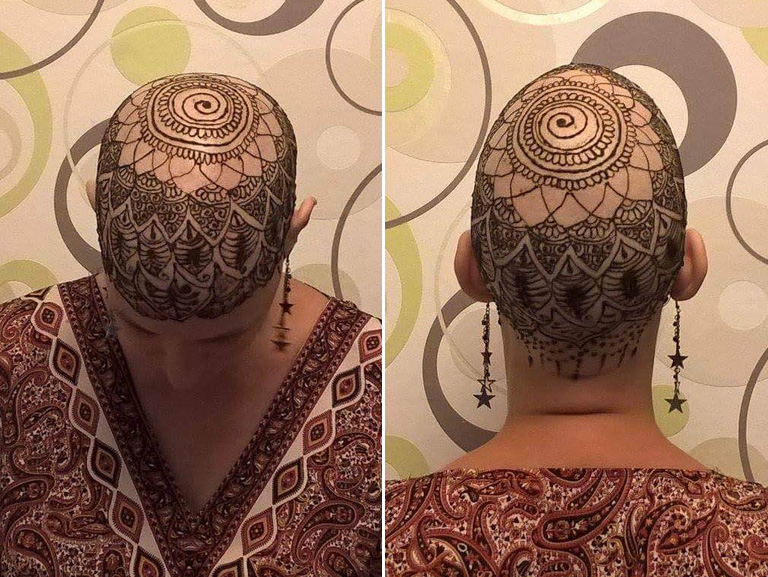 Volt olyan is, aki megszólított, hogy milyen szép a hennám, és pár percet beszélgettünk, szinte sírtam, olyan kedves jelenet volt. Egy tetoválószalon előtt álldogáló széttetovált pasi pedig felkiáltott, amikor meglátta a fejemet, hogy „azta, de fasza!”  Kell ennél több? Másnak talán ezek kicsi dolgok, de az én mellráktól, kopaszságtól megtépázott önbizalmamnak nagyon jót tett, az biztos. A kollégáim, barátaim, családom – tehát akik igazán számítanak – pedig egy emberként imádták a mandalás kopasz fejemet.