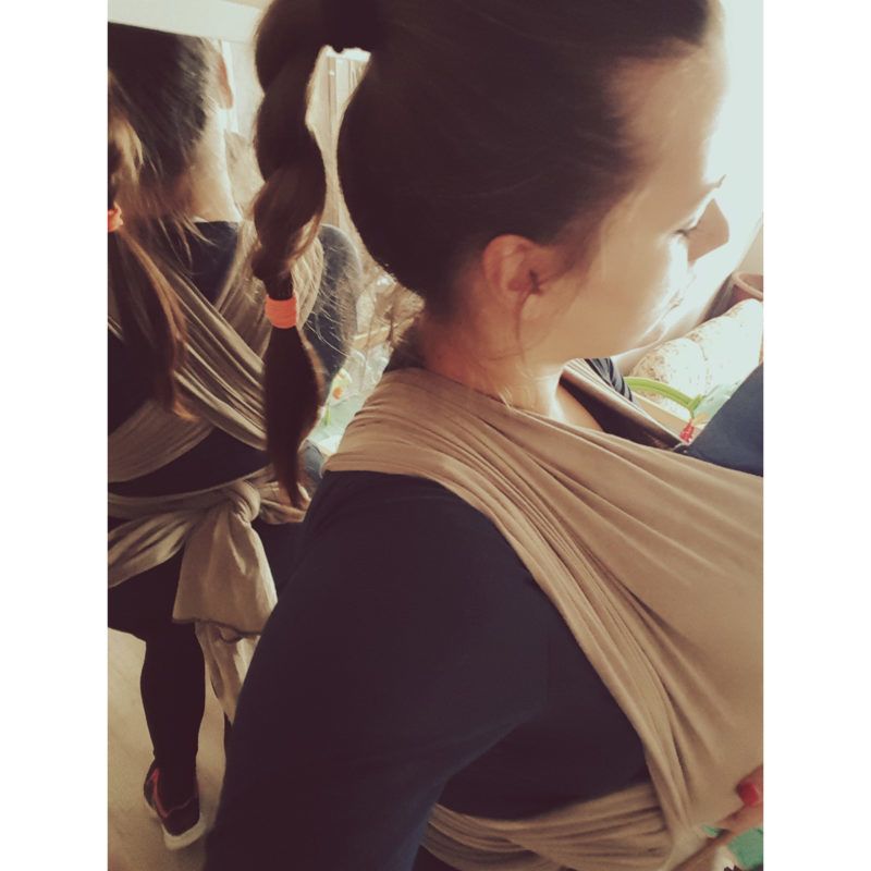 Nem, egyáltalán nem impozáns egy kilométer hosszúságú ronggyal a testemen mászkálni. Ellenben a hordozókendő ergonómiailag mindkettőnk számára tökéletes, így teljes a szett, a csúnya és meleg cipővel. Viszont cuki benne a gyerek, meg imádja, és egyből elalszik, szóval örömmel viszem benne, de ha meglátom a tükörképem egy kirakatban, rögtön úgy érzem magam, mint annak idején a gyapotszedő fekete asszonyok, és nem csak azért, mert a hátsó felem mérete emlékezetet rájuk…
