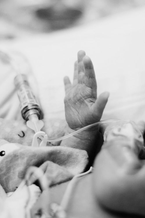 „Pisilés után egészen fura, barnás darabok jöttek belőlem, az orvosom szerint ez valami fertőzés miatt lehetett és egy kúpot írt fel. Este kilenckor ismét a kórházban voltunk, mert kétperces fájásaim voltak, kinyílt a méhszáj, és a magzatburok repesztése után már biztosan egy fertőzésre gyanakodtak, azért indulhatott be a szülés. Végül császármetszéssel, másnap hajnalban született meg a kislányom, de mire felébredtem, addigra már elvitte őt a koraszülött mentő Budapestre, a SOTE II. PiC – osztályára. Ez szombat hajnalban volt, vasárnap már én is Budapesten voltam, hogy végre láthassam a 480 grammos babámat. Szerencsére teljesen magától lélegzett, rásegítés nélkül, én pedig nagyon sírtam, amikor megláttam. Olyan pici volt és törékeny, de csuda helyes manóarca volt! Csak egy hét múlva jöttek rá, hogy súlyos szívelégtelensége van, amit csak akkor lehet – esetleg – megműteni, ha eléri a kétkilós súlyt. Már akkor felkészítettek minket, hogy bármikor feladhatja, és meghalhat, de én akkor még csak nem is sejtettem, hogy mi minden történik majd…”
