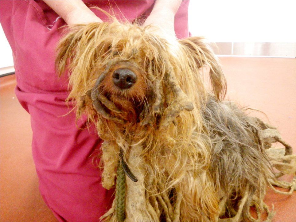 Gazdája valamiért jónak látta, hogy 13 évig ne fésülje kis yorkija, Poppy bundáját, amely ettől nem kusza, hanem egyenesen rasztás lett. A teljesen elhanyagolt kutyán véletlenül látták meg, hogy alig bír már a lábán állni, olyan súlyos a bundája. Azonnal intézkedtek, és nekiestek a kutyus szőrének. Mivel az eb nem szokott hozzá a gondoskodáshoz, először agresszív és ellenkező volt, de szépen lassan megnyugodott.