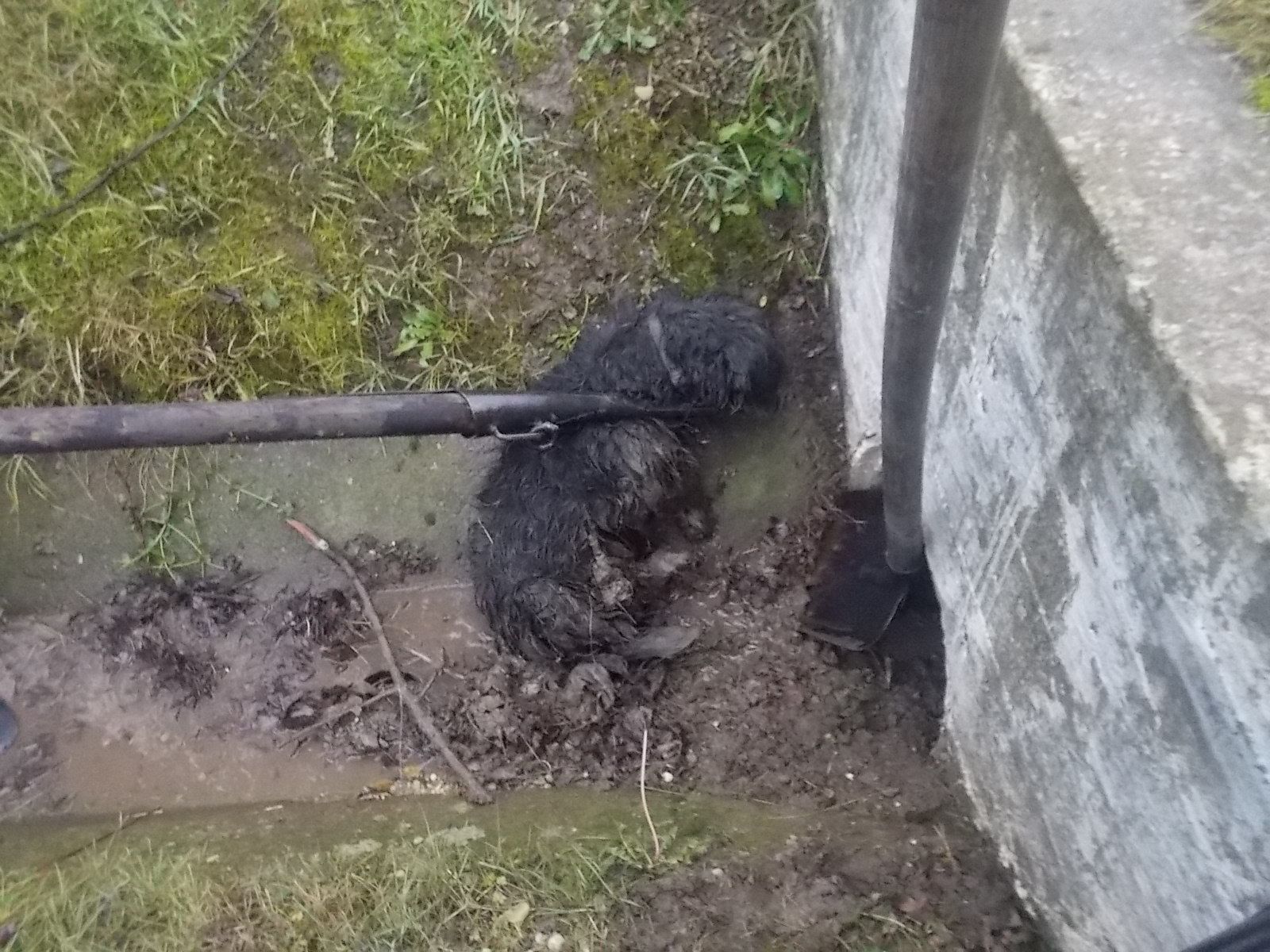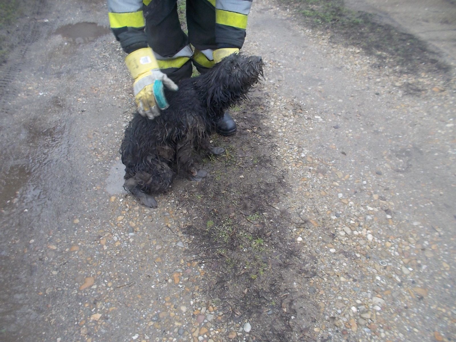 Nagyon hálás megmentőinek az a fekete pulikeverék kutyus, amelyet egy sáros vízelvezető csatorna mélyéről halásztak ki a berettyóújfalui hivatásos tűzoltók. A kutya Berettyóújfalu Batthyány utcájában került szorult helyzetbe, amikor fogságba ejtette egy eltömődött vízáteresztő csatorna.