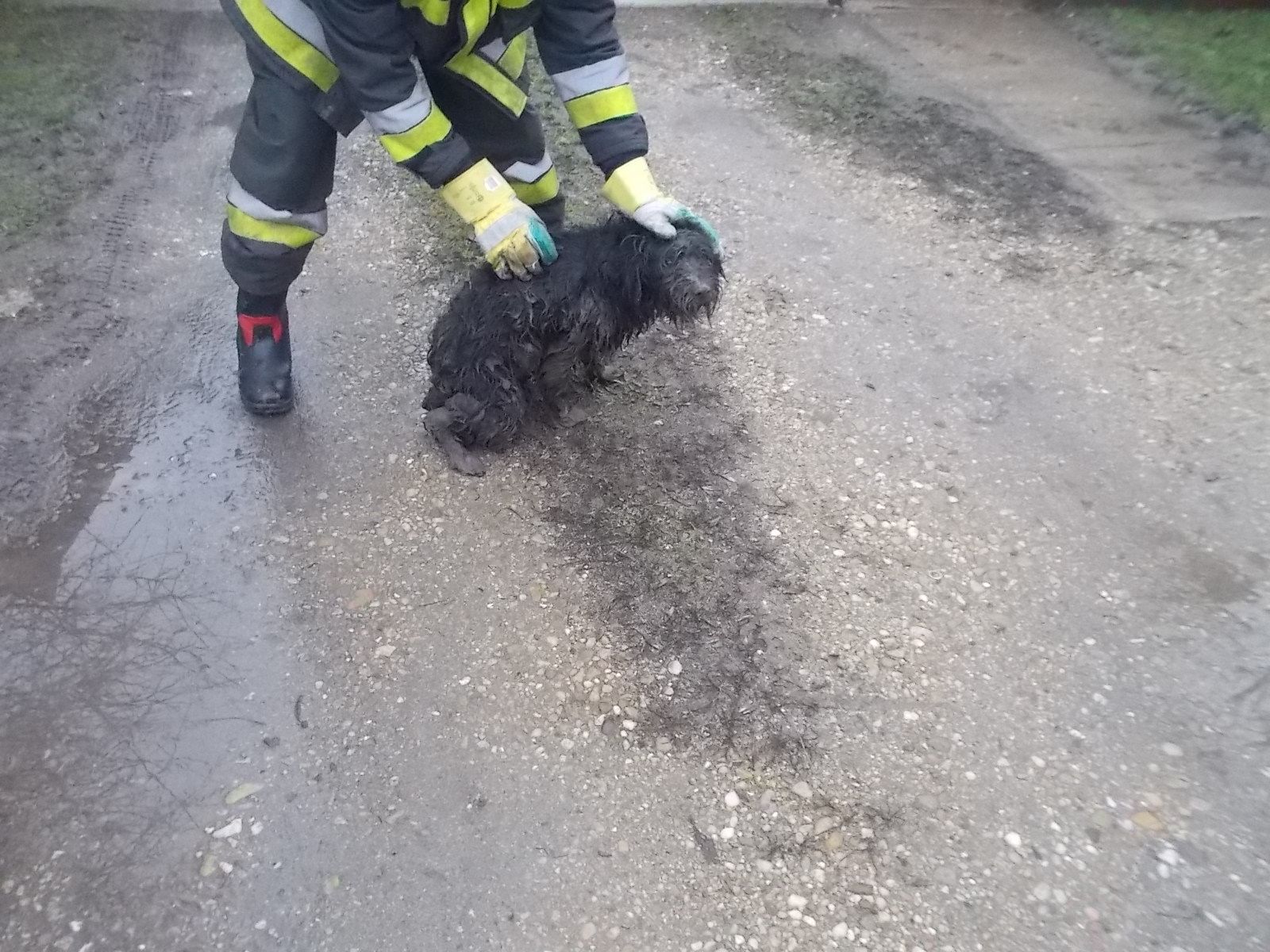 Itt már látszik a kutyus fekete bundája – Fotó: berettyóújfalui hivatásos tűzoltók