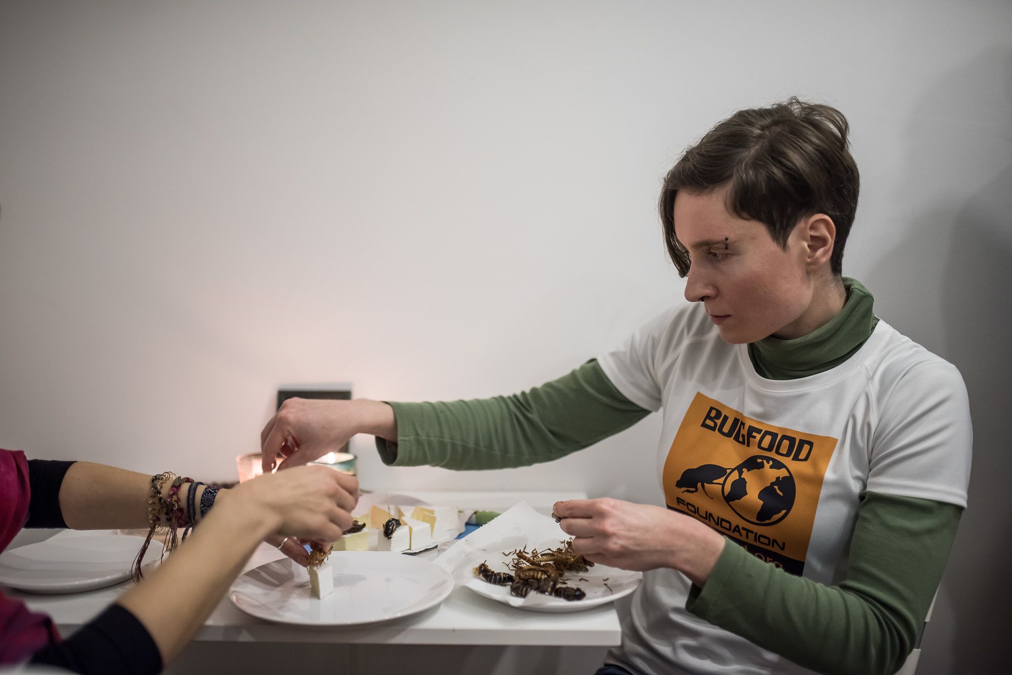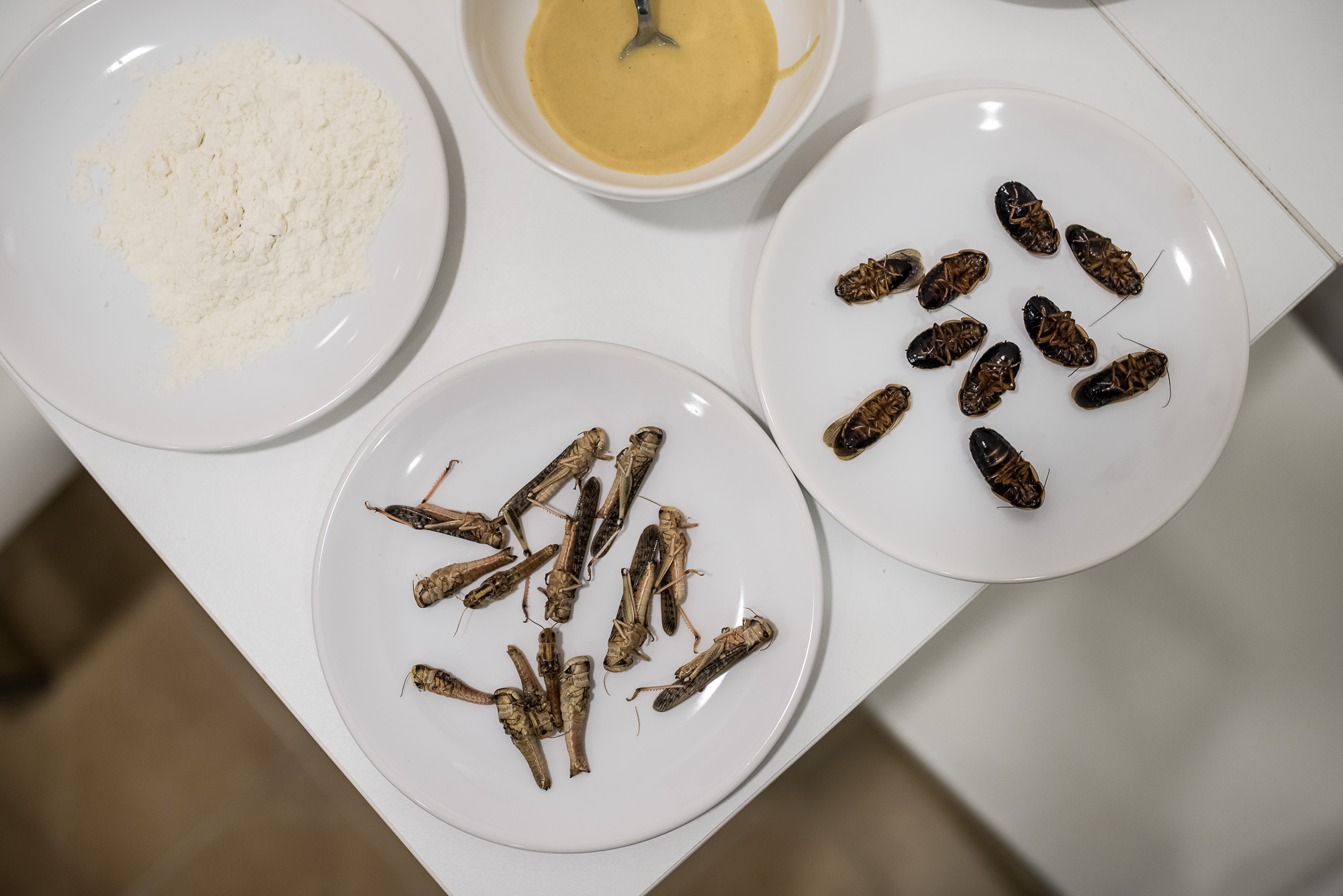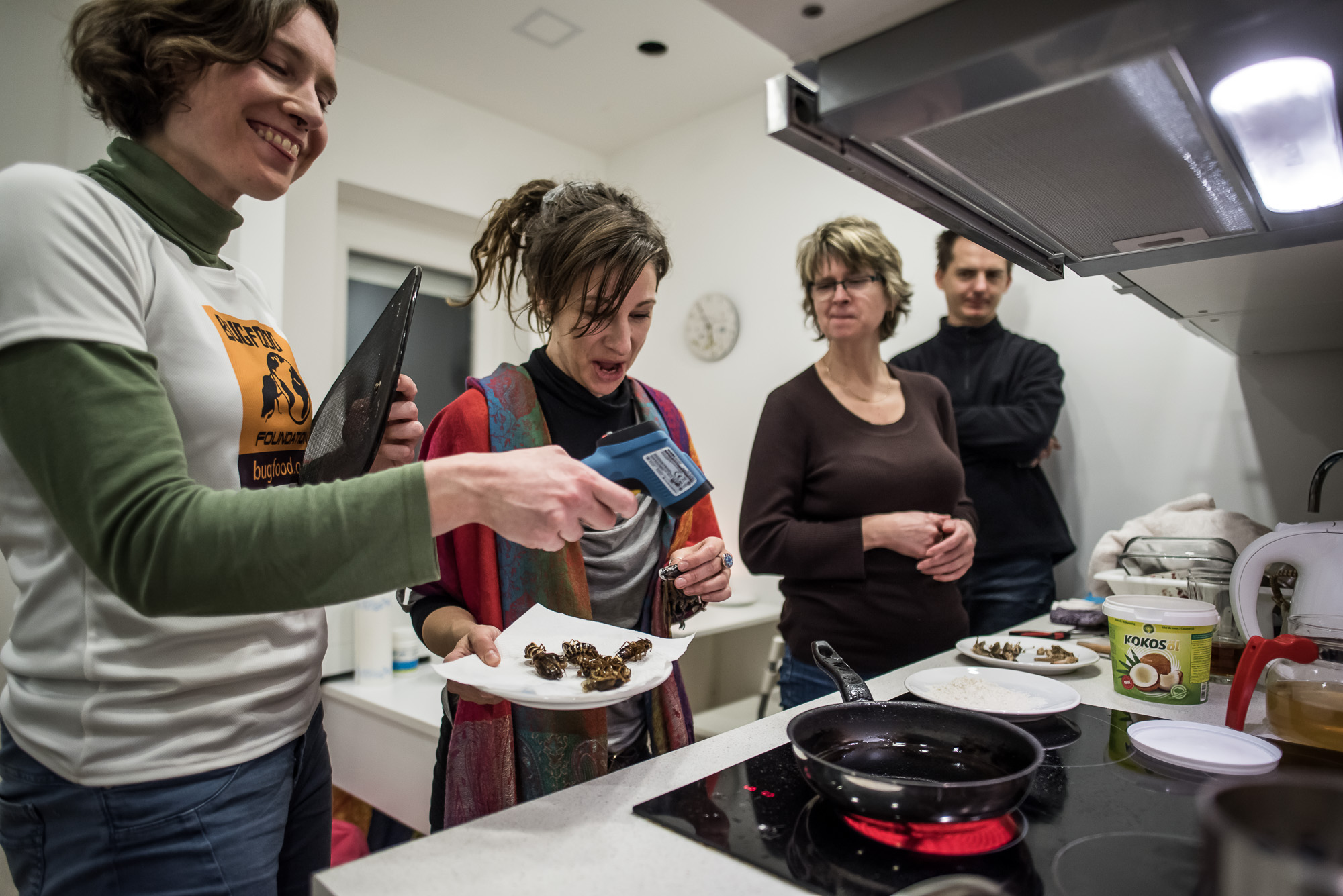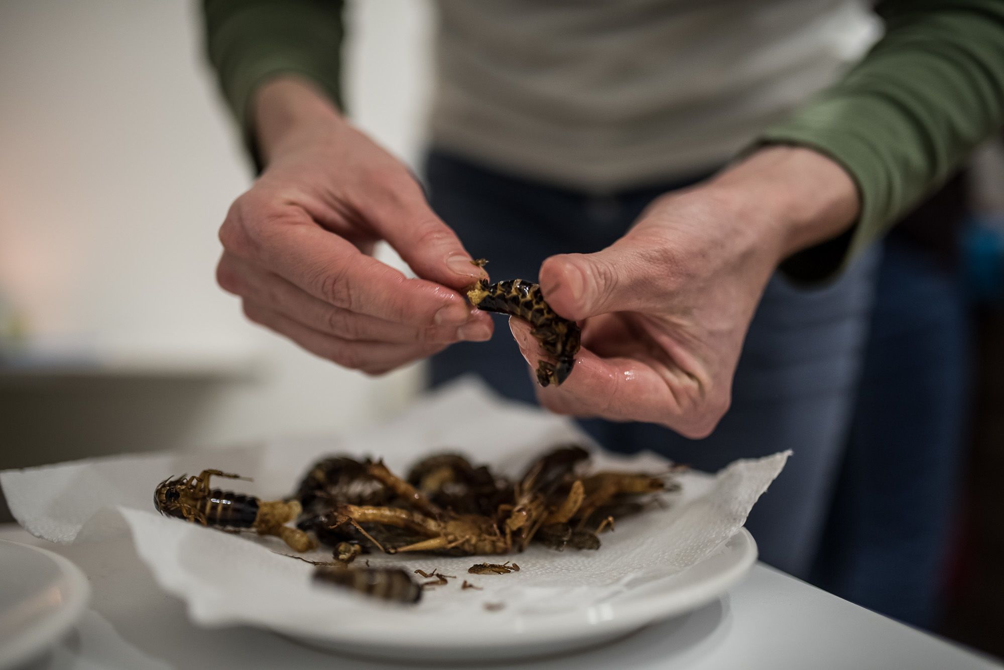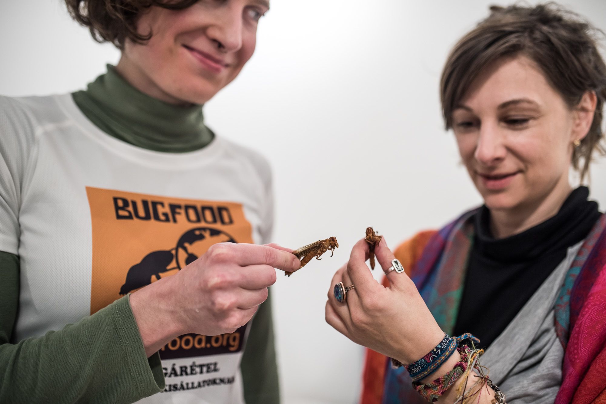 Afrikai vándorsáska és argentin csótány készül, a két alapanyagból három fogást terveznek, melegszik a tűzhely, olvad a zsír, a rovarok a tányérokon kiegyensúlyozott kompozícióba rendezve várják sorsukat. „Főleg ezekkel szeretek dolgozni” – mutatja Mariann a sáskát és a csótányt. „A tücsök nagyon apró, azzal sosem laknánk jól.” Az említett fajokat ráadásul viszonylag könnyű beszerezni, nevük ellenére „kommersz eleségállatok”, testük nagy, és az ízük is jó. A közundornak tehát nincs különösebb oka, a rovarok tápértéke, állaga és íze rendben van, a rántástól a rafinált kultúraközi fűszerezésig mindenféle recepttel kompatibilisek, szóval sokkal több az érv mellettük, mint ellenük. Lárvát viszont Mariann sem szívesen süt, „azok tudnak rágósak lenni”.