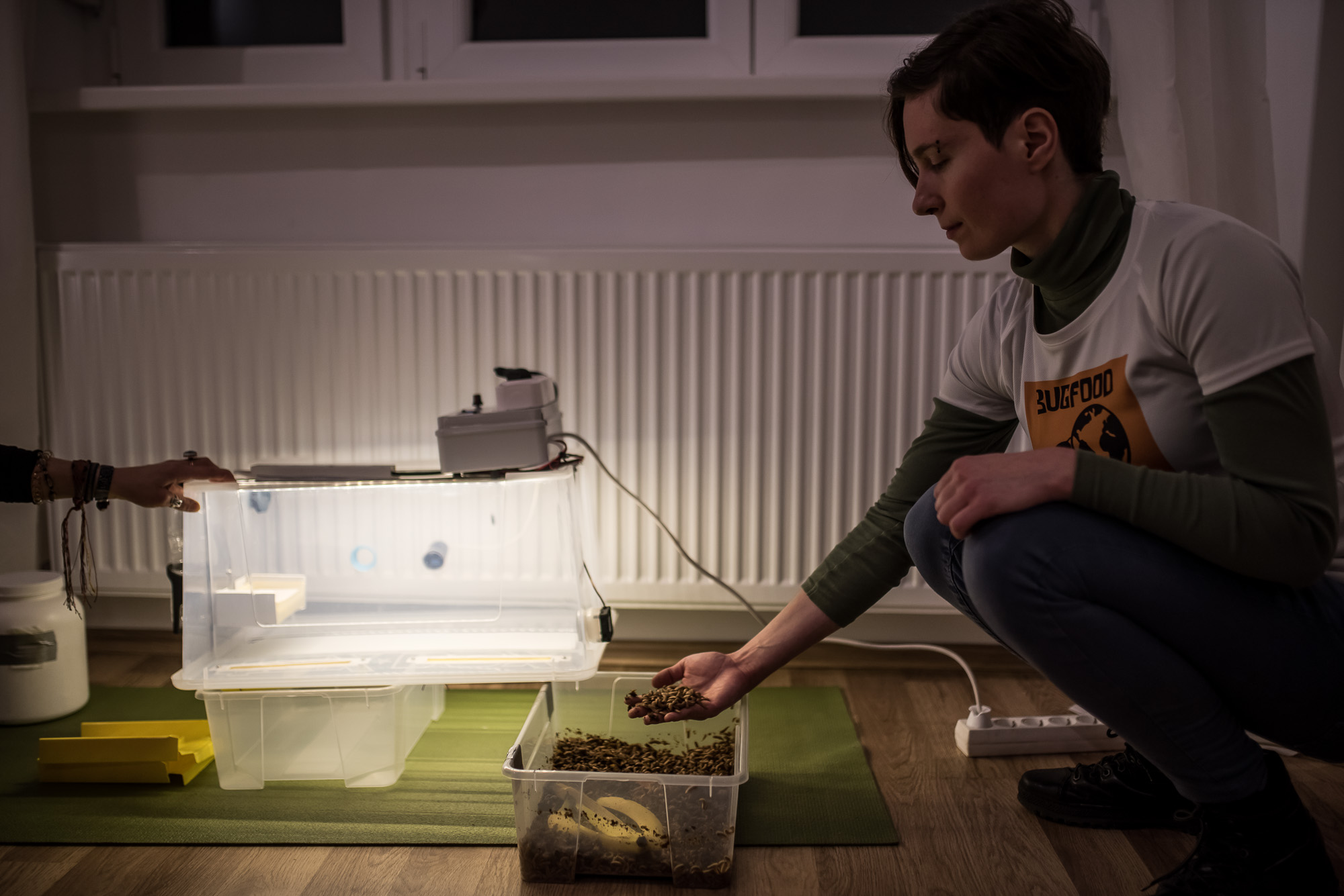 A fekete katonalegyek közül pár ugyan kiröppen a dobozból, ahova Mariann beengedi őket a dunsztosüveg nagyságú pihenőtartályból, a többség azonban rátalál a meleg, párás, fényes odúra, ahol nyugodtan lerakhatja a tojásait. A kilelt lárvák később óvodába mennek, majd munkába állnak: tápot és gyümölcsöket komposztálnak. A procedúra összetett, a látvány európai szemmel bizarr, a végeredmény azonban akár az emberiség túlélésének a kulcsa is lehet.