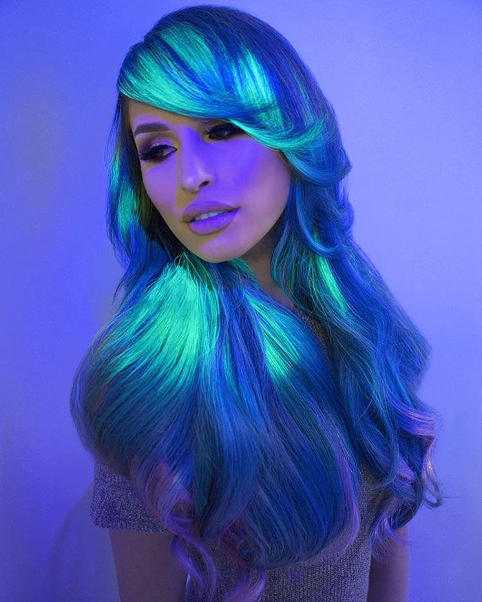Az így befestett haj világosban is figyelemfelkeltő, de a klubok sötét tánctereinek UV-fényében tud tökéletesen kiteljesedni.