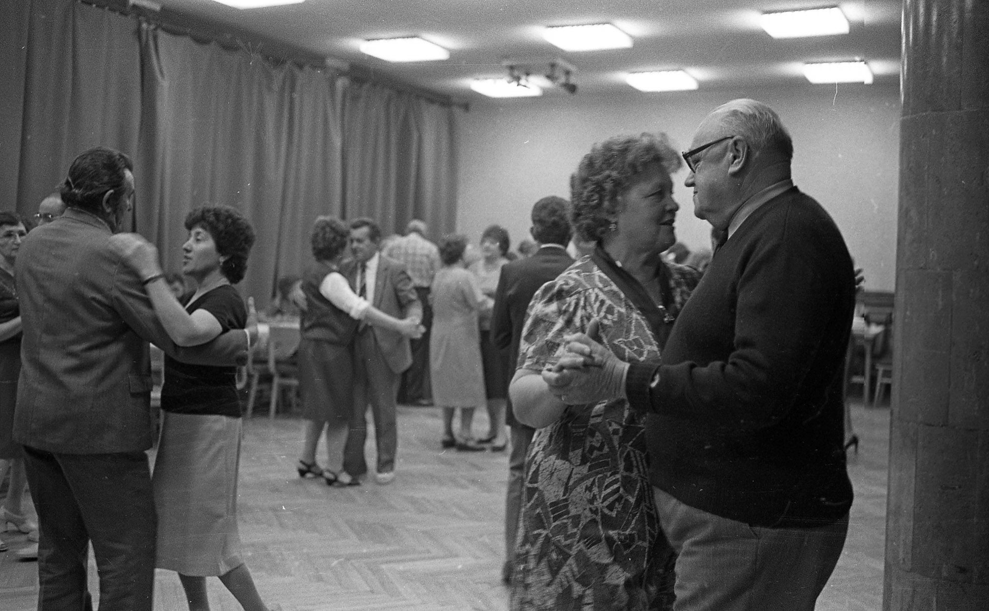 Miközben parkettaügyben kutakodtunk, ráakadtunk egy csomó képre a pécsi Magányosok klubjából. Ez, ha – képaláírás hiányában – jól értjük, egy táncos esemény volt, ahol férfiak nőkkel ismerkedtek, kissé szkeptikusan és lemondólag, de hát ki tudja, persze. (Vagy férfiak férfiakkal és nők nőkkel.) Ebben a témában ennél többet nem szeretnénk mutatni, semmi értelme nem lenne ezek után. (A parkettát figyeljétek!)