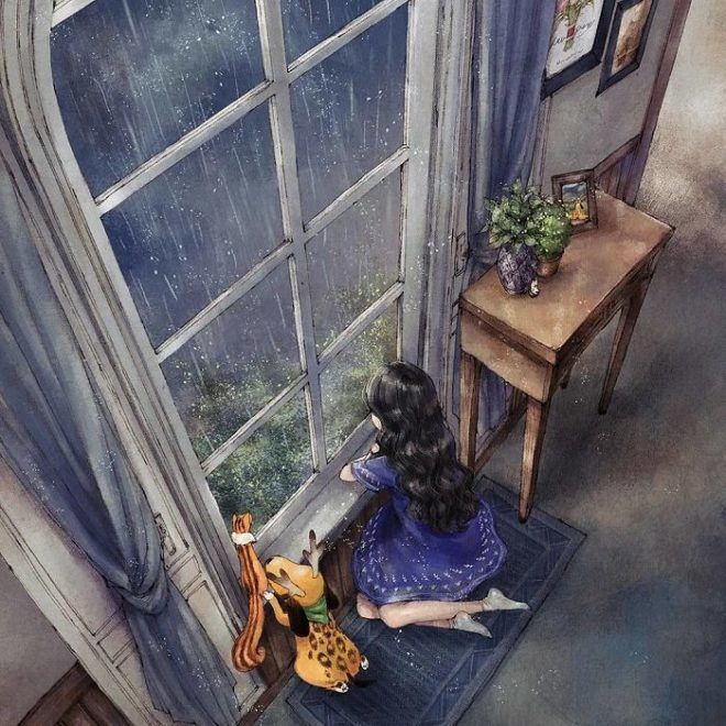 Manapság gyakran érezhetjük úgy, hogy a boldogság elengedhetetlen feltétele, hogy állandóan szem előtt legyünk, megosszunk, beszéljünk, ezért csak úgy szomjazzuk a figyelmet. Az Aeppol művésznéven alkotó fiatal koreai lány elbűvölő rajzai azonban ékes bizonyítékai, hogy az egyedüllétben is találhatunk feltöltő, örömteli pillanatokat.